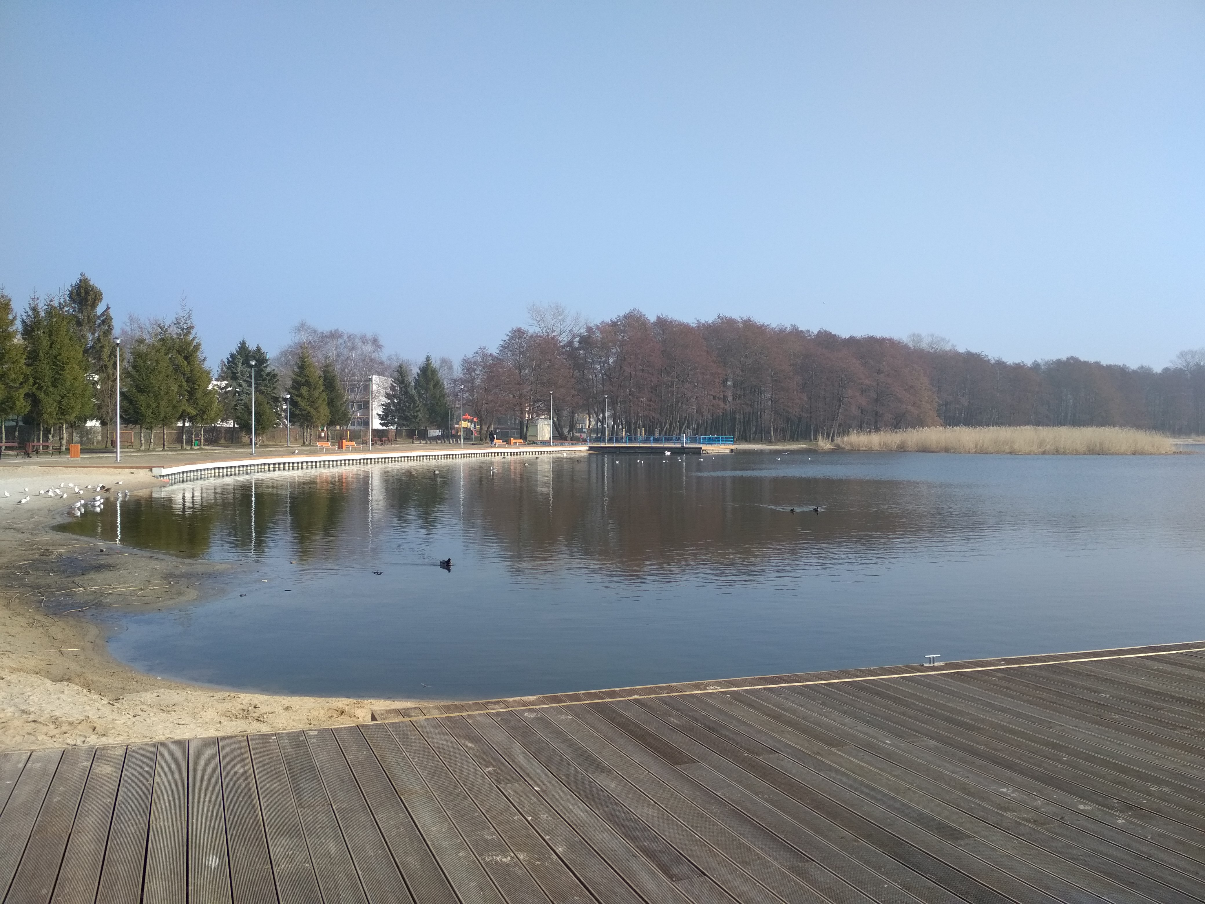 - konstrukcję ciągu pieszego wzdłuż brzegu jeziora dostępnego dla niepełnosprawnych do linii brzegowej, z zejściami dla pieszych na plażę, wejściami na promenadę z istniejącego ciągu pieszego,