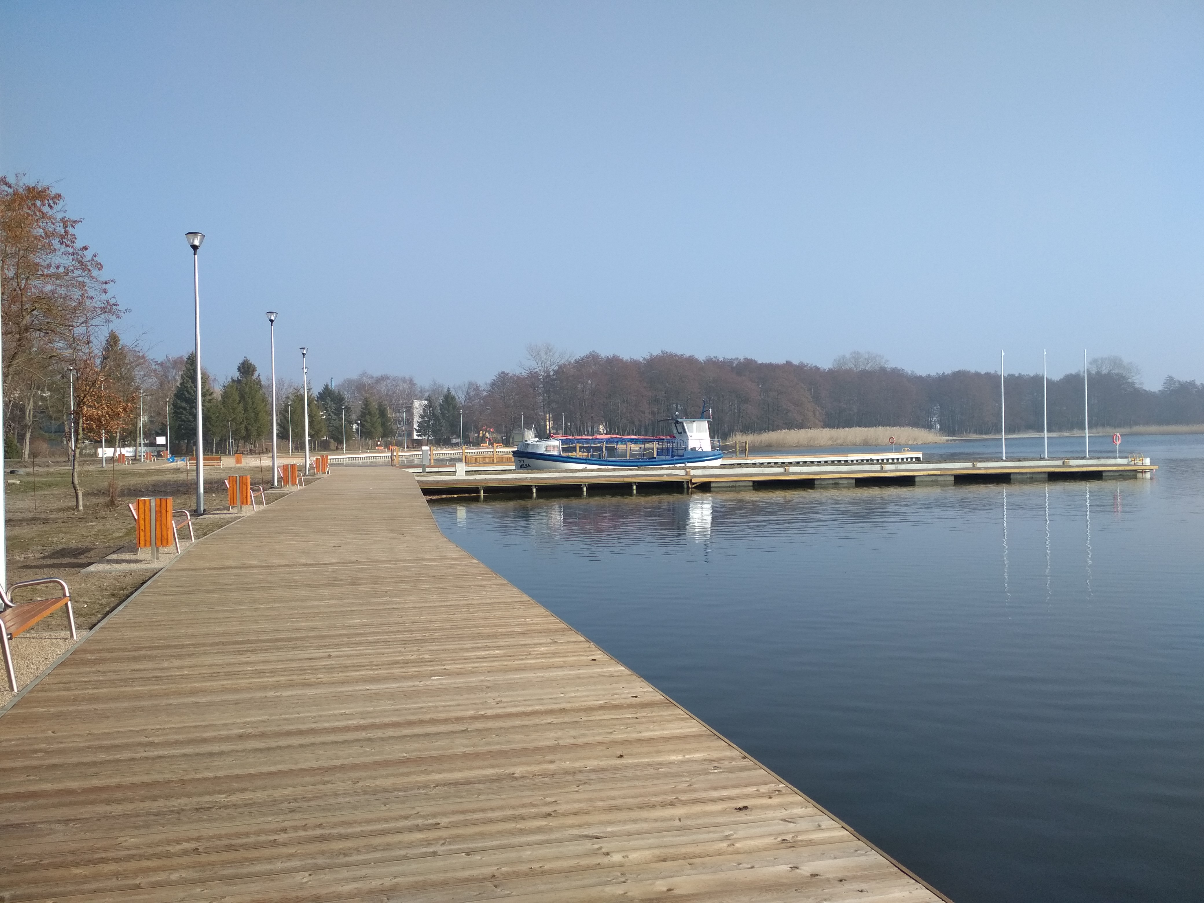 - rozbiórkę istniejącego pomostu spacerowego (molo) i budowę nowego o zróżnicowanych poziomach dla obsługi podróżnych statku wycieczkowego oraz kajaków i rowerów wodnych;