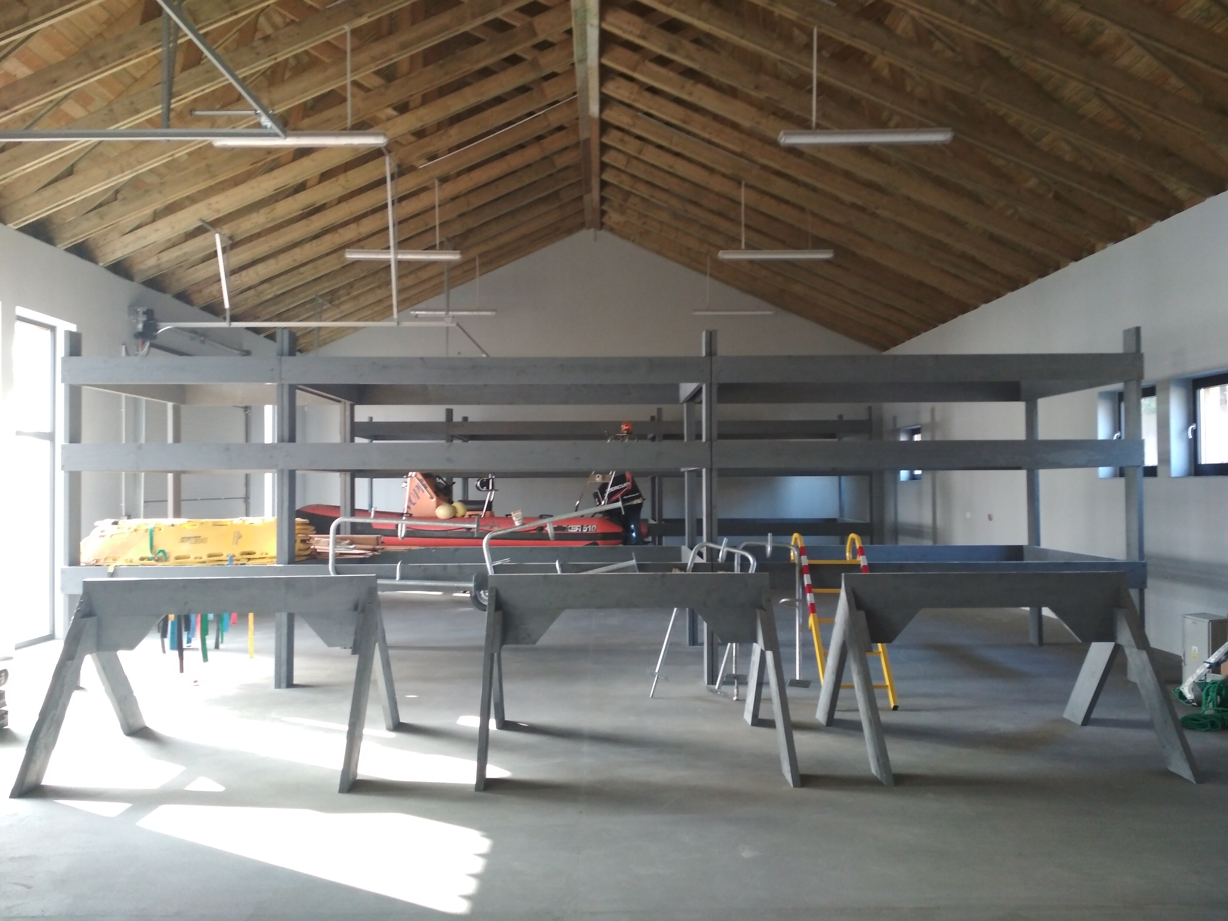 - montaż dźwigu do wodowania i wyciągania z wody większych jednostek pływających, slipu z placem manewrowym, pochylni w lekkiej konstrukcji stalowej ażurowej do wodowania i wyciągania lekkich jednostek pływających typu optymist, kajaki, łodzie,