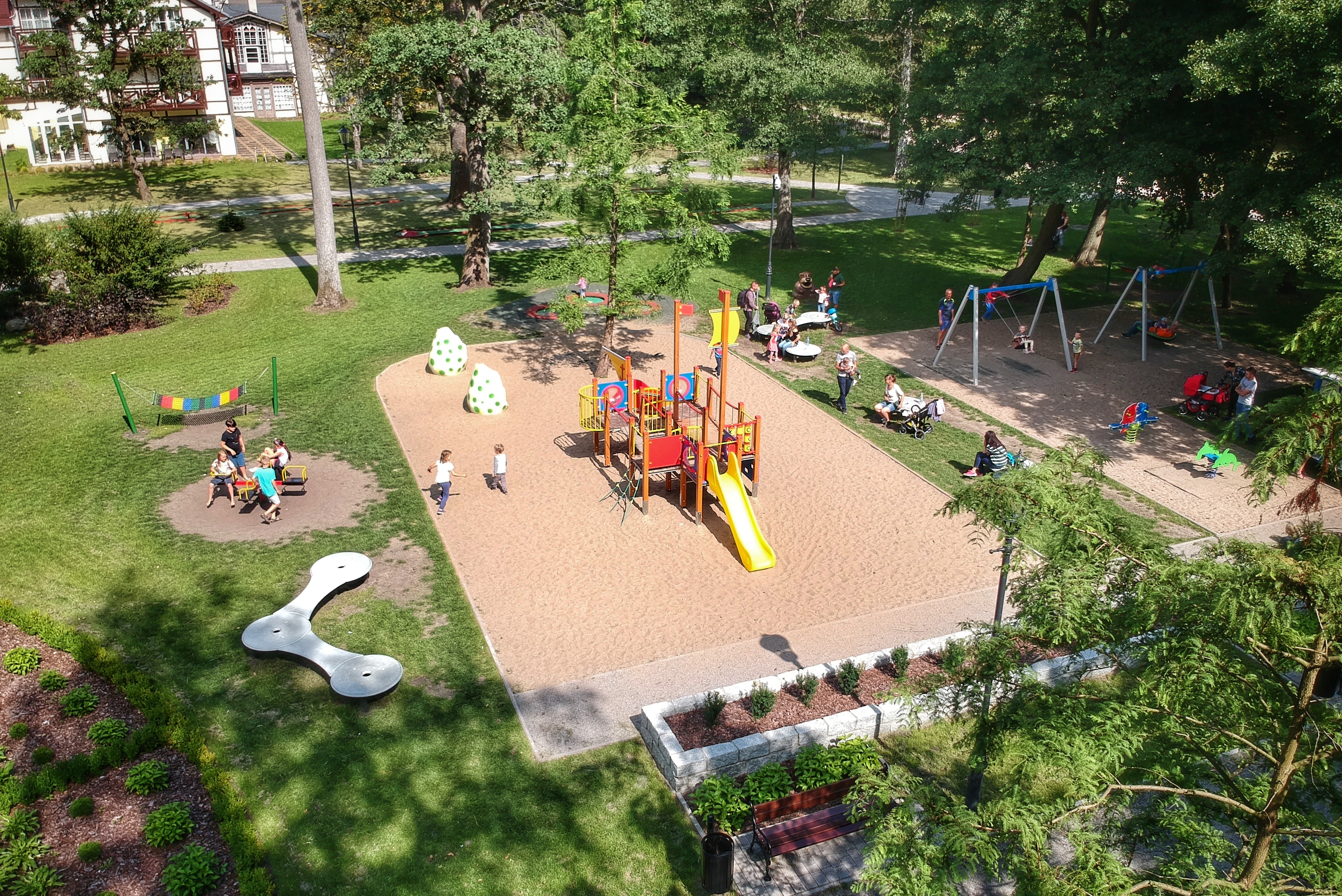 • budowę placu zabaw, parku linowego, ogrodu zapachów, i minigolfa;