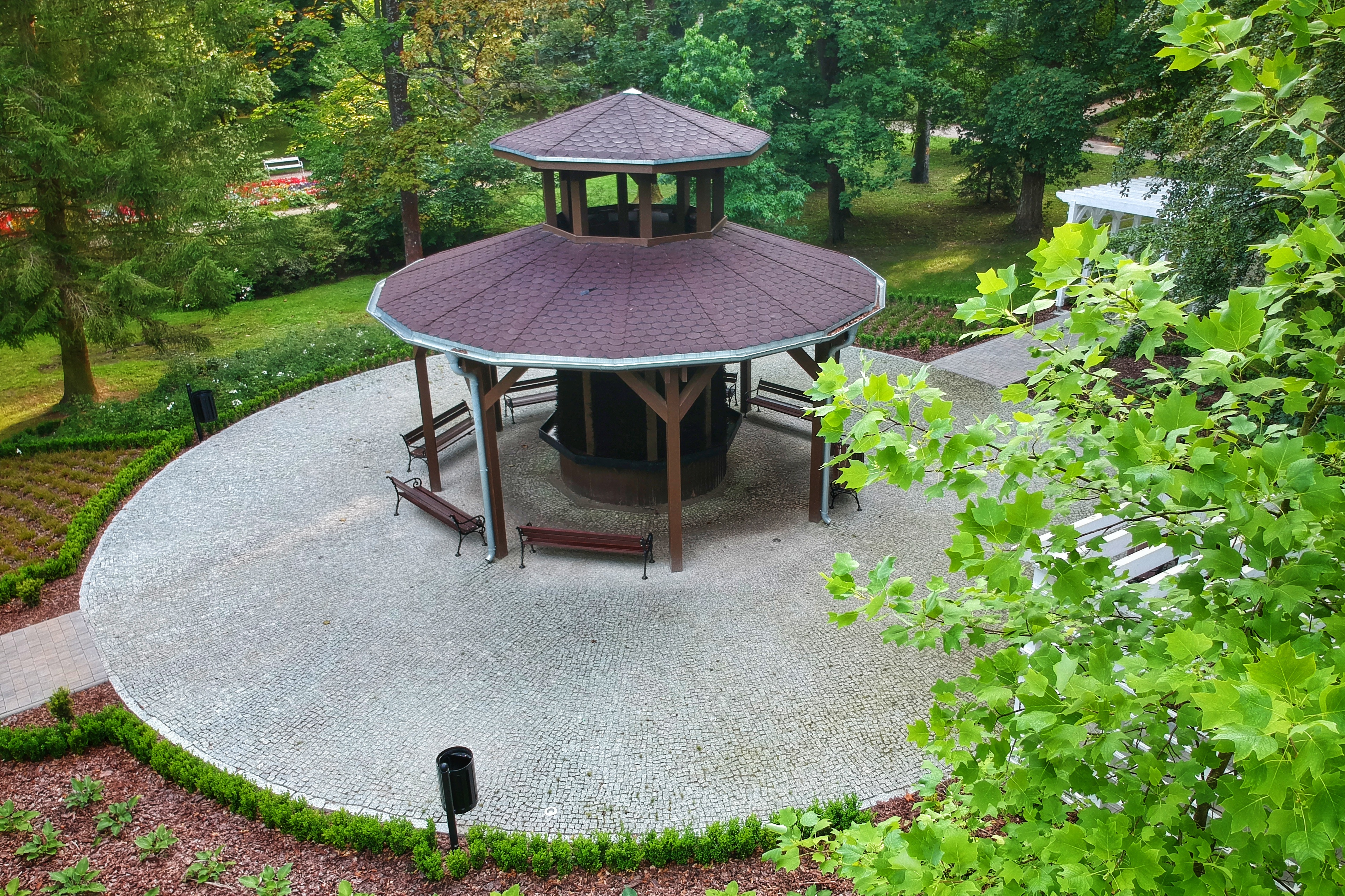 The park in Połczyn-Zdrój is one of the largest spa parks in Poland. The town manages an area of about 80 ha, of which nearly 30 ha is protected due to its historic character. For many years, smaller or larger investments have been implemented to improve the image and attractiveness of the park. As part of the project, the following construction and installation tasks were carried out: