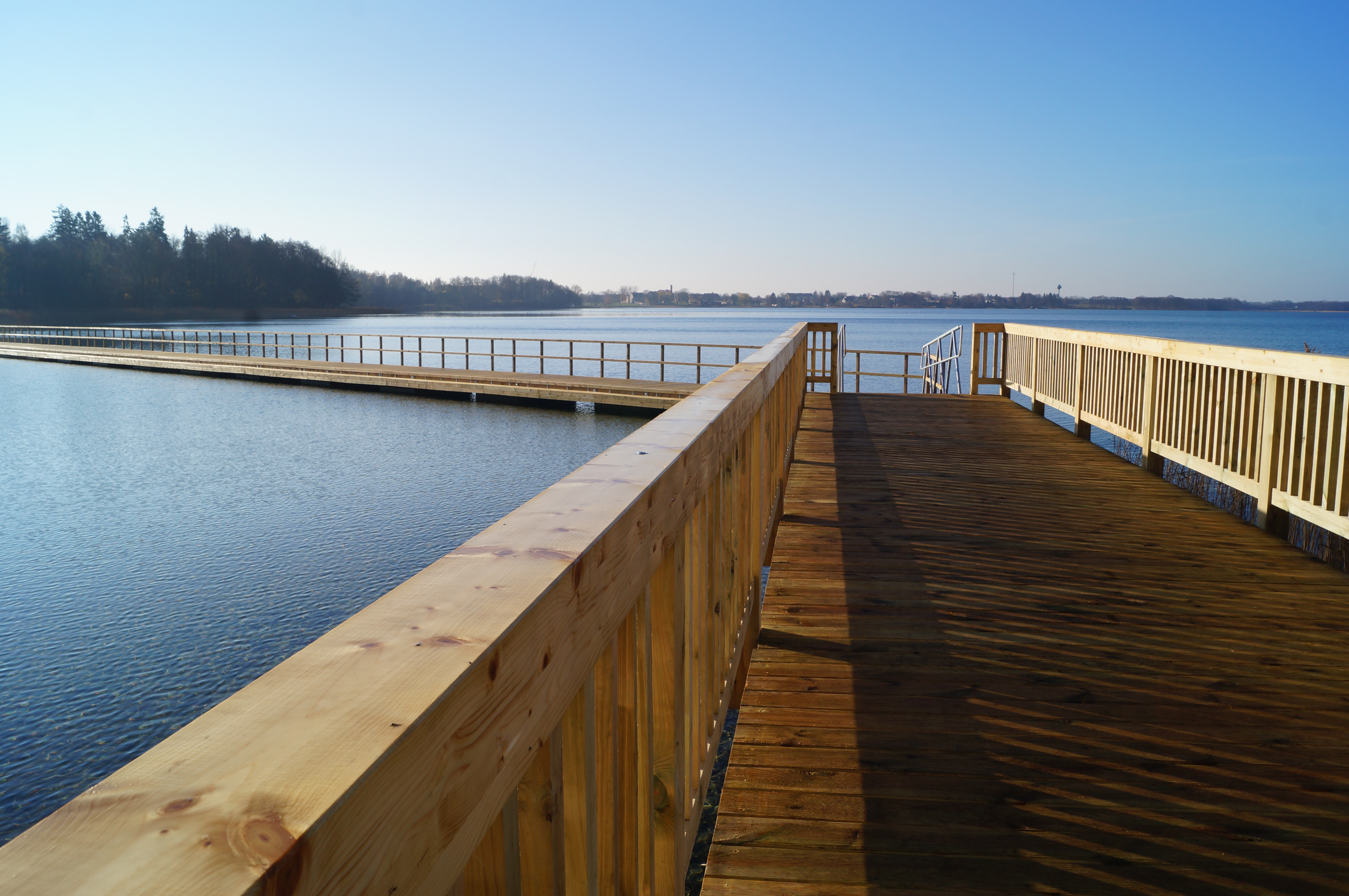 Pomost na Jeziorze Ińsko usytuowany jest wzdłuż linii brzegowej. Jego konstrukcja składa się z dwóch części, jedna z nich jest stała, oparta na stalowych palach, a druga wzniesiona na betonowych pływakach. Łączna długość to 216 m, jest więc wystarczająco dużo miejsca, żeby zaprzyjaźnić się z atmosferą jeziora w wyjątkowych okolicznościach.