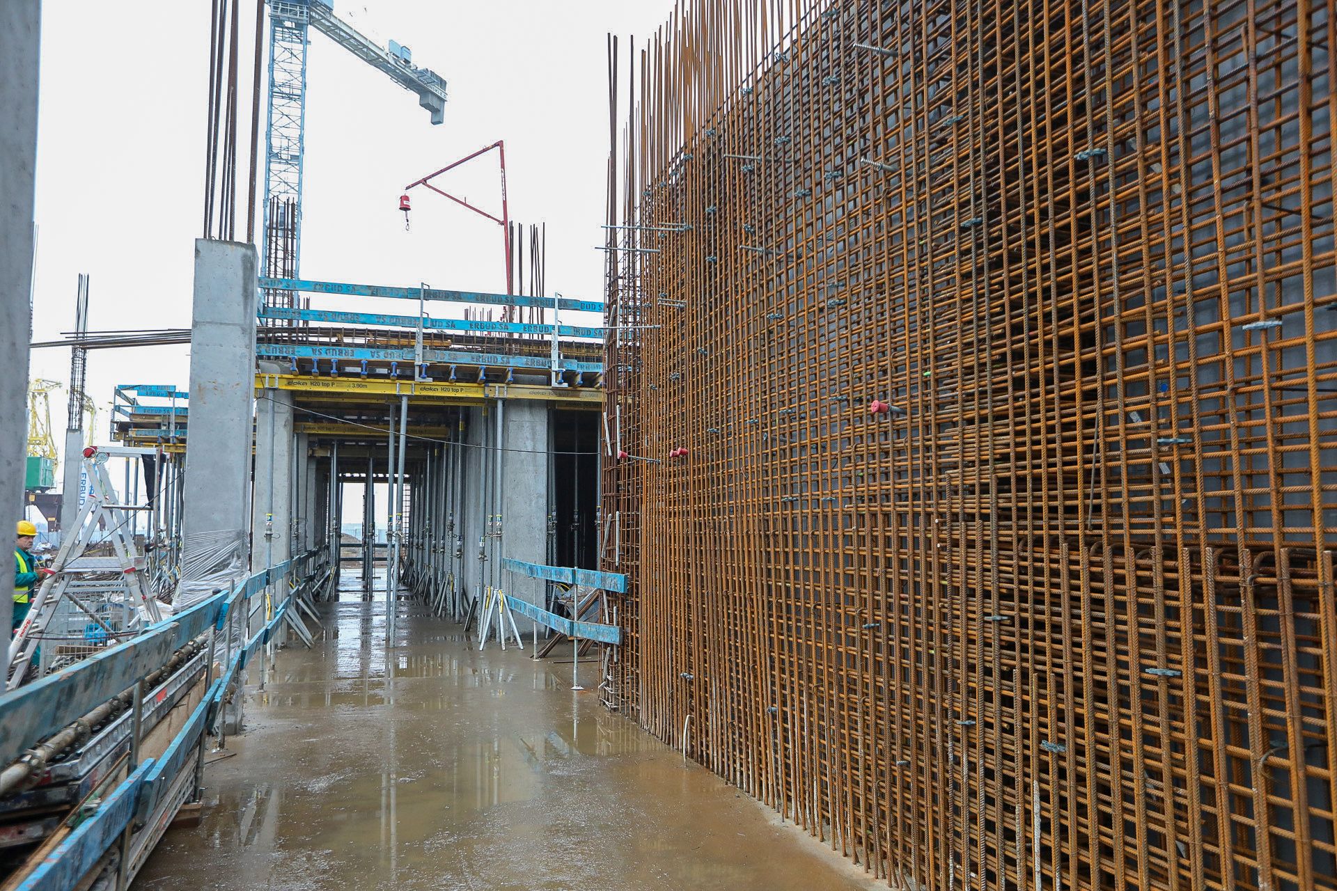W styczniu w zalanym wodą wykopie specjalistyczna grupa nurków usuwała pozostałości po dawnej budowli – drewniane pale i fundamenty z czasów przedwojennych. Po oczyszczeniu miejsca betonowania nurkowie ponownie zeszli pod wodę, aby nadzorować wylewanie betonu. Prace podwodne wykonywała firma AQUA-NEKO Michał Kurczyński, podwykonawca ERBUDU.