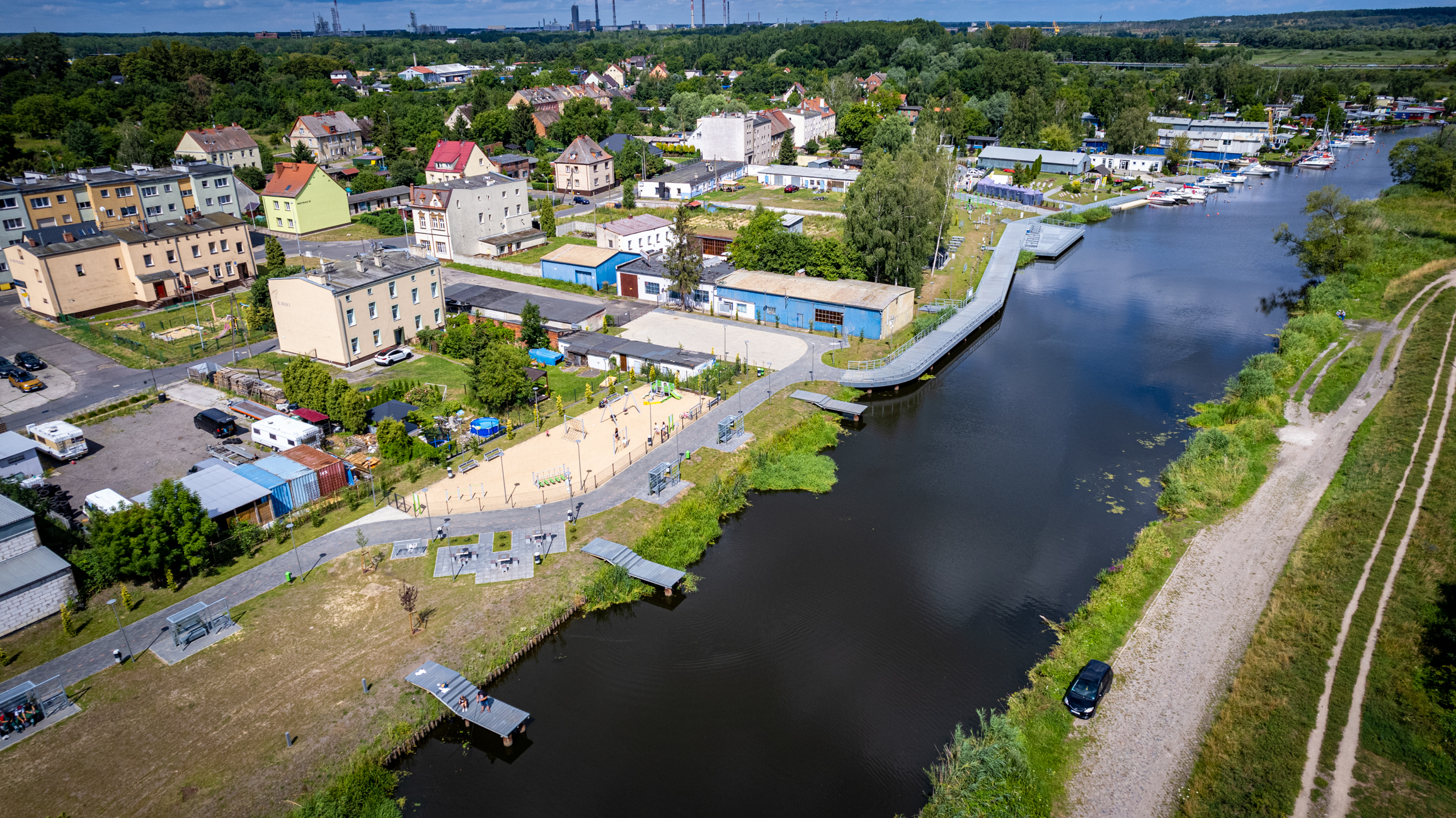 Rewitalizacja obszarów nad Łarpią w Policach objęła budowę wzdłuż brzegu rzeki przestrzeni rekreacyjnej z terenem do aktywności ruchowej, spędzania czasu wolnego oraz integracji mieszkańców. Pojawiły się pomosty spacerowe, taras widokowy, stoły szachowe, strefy dla różnych grup wiekowych i sprawnościowych, ścieżka rowerowa, a także nowe nasadzenia roślin, oświetlenie oraz cztery pomosty wędkarskie na odcinku pomiędzy miejską przystanią żeglarską a ul. Goleniowską. Dzięki przeprowadzonym zmianom mieszkańcy zyskali nowoczesną i atrakcyjną przestrzeń z widokiem na rzekę stanowiącą prawie 6-kilometrowe boczne ramię Odry – idealne dla turystyki żeglarskiej i kajakowej.